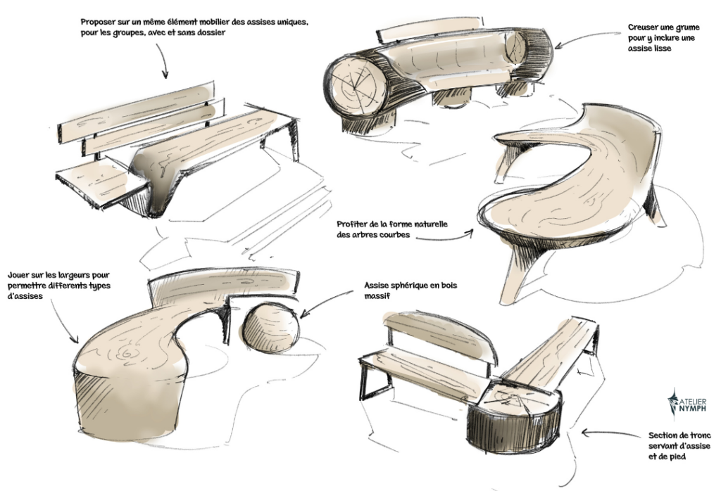 Dessiner les équipements d’un espace compte autant à nos yeux que le choix des végétaux pour venir habiter et donner une atmosphère particulière à un projet.